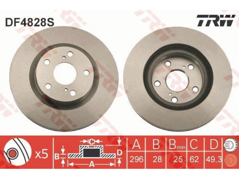 TRWDF4828S ΔΙΣΚΟΠΛΑΚΑ ΕΜΠ.ΑΕΡΙΖ.(Φ296) TRW DF4828S - Δισκόπλακα