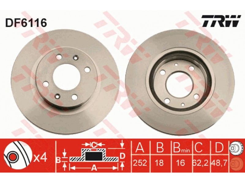 TRWDF6116 ΔΙΣΚΟΠΛΑΚΑ ΕΜΠ.ΑΕΡΙΖ.(Φ252) TRW DF6116 - Δισκόπλακα