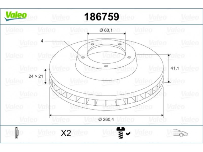 Criteries : Αριθμός οπών 1 1, Βάρος [kg] 10,4, Διάμετρος κέντρωσης [mm] 60,1, Ελάχιστο πάχος [mm] 21, Εξωτερική διάμετρος [mm] 260, Ζάντα, αριθμός οπών 4, Πάχος δισκόπλακας [mm] 24, Πλευρά τοποθέτησης μπροστινός άξονας, Πλήθος των οπών στερέωσης 2, Στοιχεία ελέγχου ECE-R90, Συμπληρωματικό προϊόν/ πληροφορίες 2 με βίδα, Τύπος δισκόφρενων αεριζόμενο, Υψος [mm] 41,1
