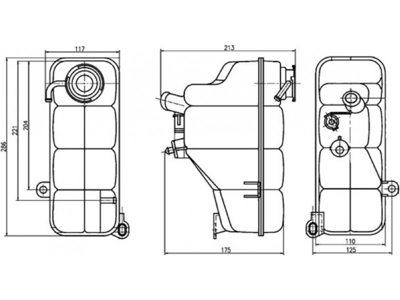 Criteries : Καθαρό βάρος [g] 1060, Μήκος [mm] 213,0, μήκος συσκευασίας [cm] 30,0, Πλάτος [mm] 266, πλάτος συσκευασίας [cm] 23,00, Συμπληρωματικό προϊόν / συμπληρωματική πληροφορία χωρίς αισθητήρα στάθμης ψυκτικού υγρού, Συμπληρωματικό προϊόν/ πληροφορίες 2 χωρίς καπάκι, Υλικό Πλαστικό, Υψος [mm] 125,0, ύψος συσκευασίας [cm] 15,00, Χρώμα μαύρο