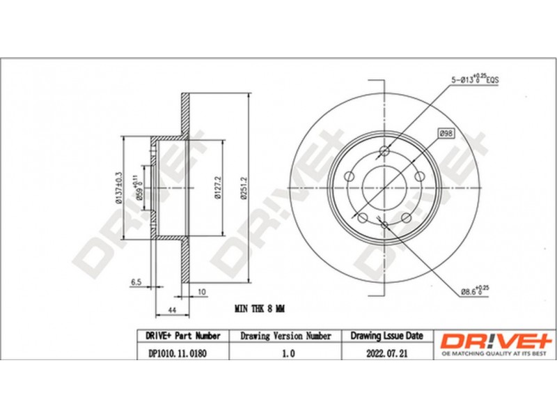 DRIVE+ ΔΙΣΚΟΠΛΑΚΕΣ Dr!ve+ DP1010.11.0180 - Δισκόπλακα