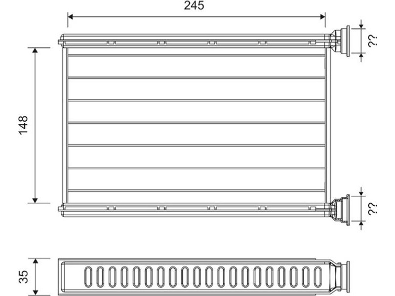 Criteries : Βάθος διχτυού [mm] 27, Διάμετρος εισόδου [mm] 21, Διάμετρος εξόδου [mm] 21, Μήκος διχτυού [mm] 148, Περιορισμός κατασκευαστή VALEO, Πλάτος διχτυού [mm] 255, Υλικό Αλουμίνιο