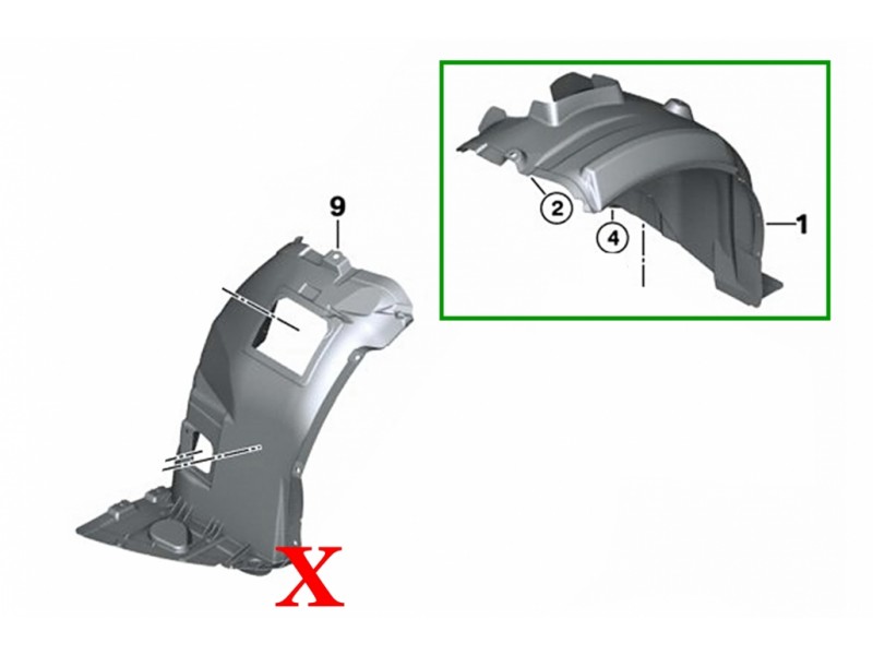 Εσωτερική επένδυση μπροστινού φτερού ΔΕΞΙΑ*Σημείωση: Τα κλιπ στερέωσης δεν περιλαμβάνονται.
