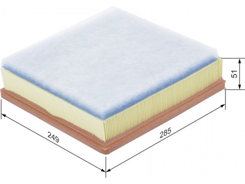 Criteries : Μήκος [mm] 285, Παραλλαγή φίλτρου Στοιχείο φίλτρου, Πλάτος [mm] 249, Ποσότητα 1, Υψος [mm] 51