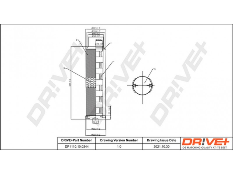 Criteries : Εξωτερική διάμετρος 1 [mm] 119, Εξωτερική διάμετρος [mm] 112, Εσωτερική διάμετρος 1 [mm] 80, Παραλλαγή φίλτρου Στοιχείο φίλτρου, Υψος [mm] 335