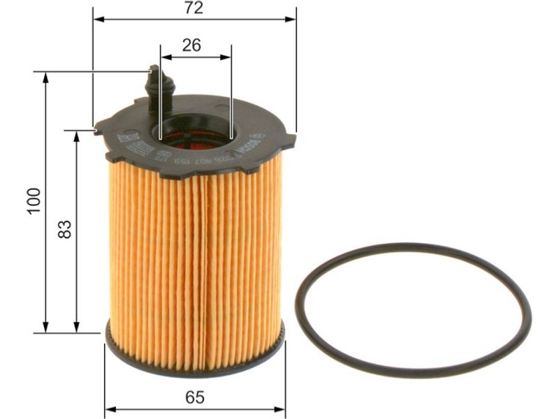 Criteries : Εξωτερική διάμετρος 1 [mm] 65, Εξωτερική διάμετρος [mm] 72, Εσωτερική διάμετρος 1 [mm] 26, Παραλλαγή φίλτρου Στοιχείο φίλτρου, Συμπληρωματικό προϊόν / συμπληρωματική πληροφορία με τσιμούχα, Ύψος 1 [mm] 83, Υψος [mm] 100