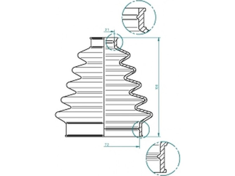 Criteries : Έκδοση FlexBoot, Εσωτερική διάμετρος 1 από [mm] 19, Εσωτερική διάμετρος 1 έως [mm] 23, Εσωτερική διάμετρος 2 από [mm] 69, Εσωτερική διάμετρος 2 έως [mm] 79, Νέο εξάρτημα , Συμπληρωματικό προϊόν / συμπληρωματική πληροφορία με λίπος, Υλικό φούσκας Polychloropren (Neopren), Υψος [mm] 100