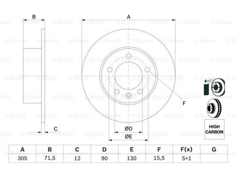 Criteries : Αριθμός οπών 5, Διάμετρος κέντρωσης [mm] 90, Διάμετρος κύκλου οπής [mm] 130, Διάμετρος οπής έως [mm] 15,5, Ελάχιστο πάχος [mm] 10, Εξωτερική διάμετρος [mm] 304,9, Επεξεργασία κραματωμ./εξ. ανθρακωμένο, Επιφάνεια με επίστρωση, Πάχος δισκόπλακας [mm] 12, πληρεί τις προδιαγραφές ECE ECE-R90, Τύπος δισκόφρενων Πλήρες, Υψος [mm] 71,5
