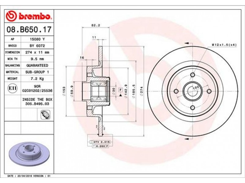 08.B650.17 ΔΙΣΚΟΙ ΟΠΙΣΘ. RENAULT GRAND SCENIC II 04-09(274MM) BREMBO 08.B650.17 - Δισκόπλακα