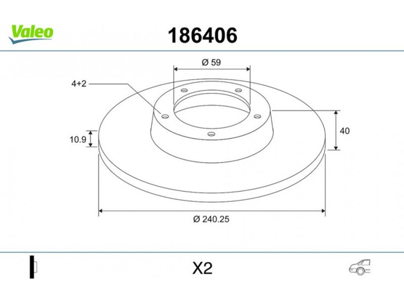 Criteries : Βάρος [kg] 7,25, Διάμετρος κέντρωσης [mm] 59, Ελάχιστο πάχος [mm] 9,2, Εξωτερική διάμετρος [mm] 240, Ζάντα, αριθμός οπών 4, Πάχος δισκόπλακας [mm] 10,9, Πλευρά τοποθέτησης Πίσω άξονας, Πλήθος των οπών στερέωσης 2, Συμπληρωματικό προϊόν/ πληροφορίες 2 χωρίς δακτύλιο αισθητήρα του ABS, Συμπληρωματικό προϊόν/ πληροφορίες 2 χωρίς ενσωματωμένο ρουλεμάν τροχού, Τύπος δισκόφρενων πλήρες, Υψος [mm] 40