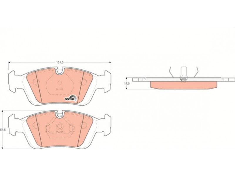 Criteries : Επαφή προειδοποίησης φθοράς προετοιμασμένο για προειδοποιητική ένδειξη φθοράς, Πάχος [mm] 17,5, Περιορισμός κατασκευαστή ATE, Πλάτος [mm] 151,5, Στοιχεία ελέγχου E1 90R 01024/165, Υψος [mm] 57,5