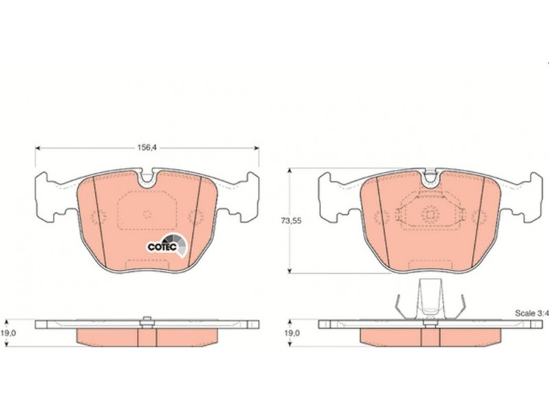 Criteries : Επαφή προειδοποίησης φθοράς προετοιμασμένο για προειδοποιητική ένδειξη φθοράς, Πάχος [mm] 19, Περιορισμός κατασκευαστή ATE, Πλάτος [mm] 156,4, Στοιχεία ελέγχου E9 90R 01705/035 Ext, Υψος [mm] 73,6