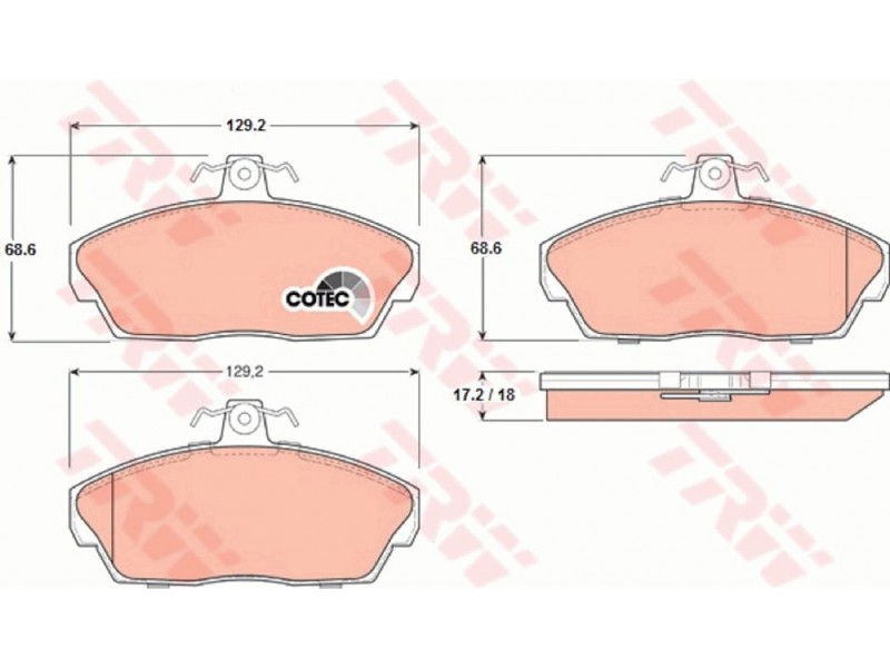 Criteries : Επαφή προειδοποίησης φθοράς όχι προετοιμασμένο για προειδοποιητική ένδειξη φθοράς, Πάχος [mm] 18, Περιορισμός κατασκευαστή TRW, Πλάτος [mm] 129,2, Στοιχεία ελέγχου E1 90R 01024/256, Υψος [mm] 68,6