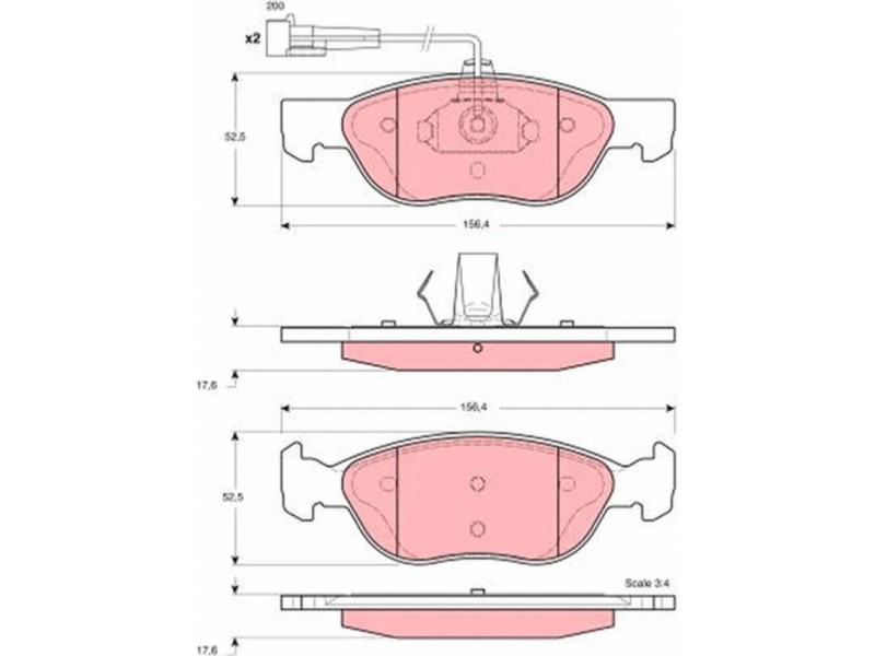 Criteries : Επαφή προειδοποίησης φθοράς συμπεριλ. επαφής για ένδειξη φθοράς, Μήκος επαφής προειδοποίησης [mm] 200, Πάχος [mm] 17,6, Περιορισμός κατασκευαστή ATE, Πλάτος [mm] 156,4, Πλήθος ενδείξεων φθοράς [ανά άξονα] 2, Στοιχεία ελέγχου E9 90R - 01024/110, Υψος [mm] 52,5
