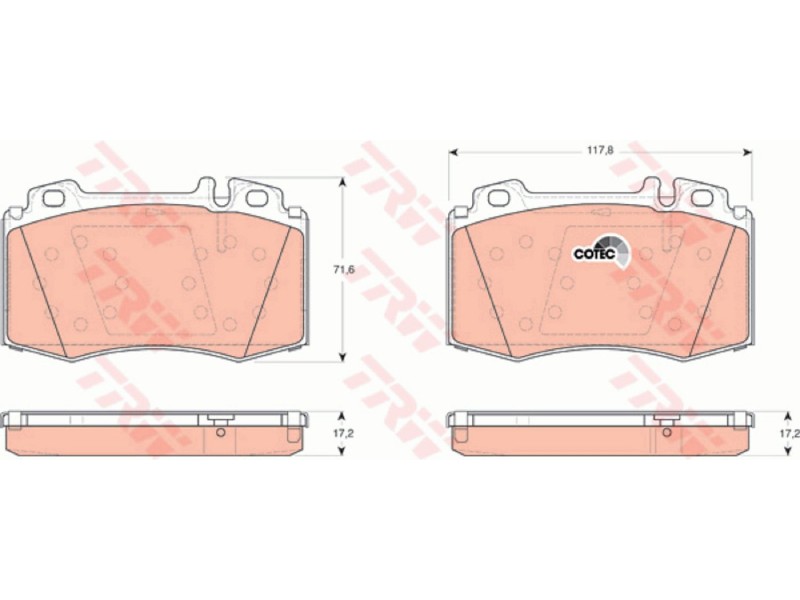 Criteries : Επαφή προειδοποίησης φθοράς προετοιμασμένο για προειδοποιητική ένδειξη φθοράς, Πάχος [mm] 17,2, Περιορισμός κατασκευαστή BREMBO, Πλάτος [mm] 117,8, Στοιχεία ελέγχου E9 90R 01107/282, Υψος [mm] 71,6