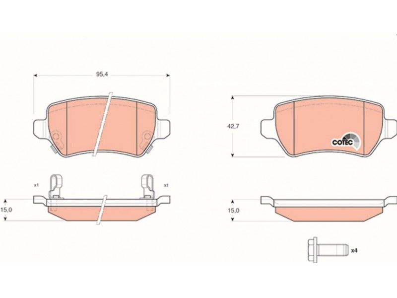 Criteries : Επαφή προειδοποίησης φθοράς με ηχητική προειδοποίηση φθοράς, Πάχος [mm] 15, Περιορισμός κατασκευαστή TRW, Πλάτος [mm] 95,4, Στοιχεία ελέγχου E9 90R - 01120/553, Συμπληρωματικό προϊόν / συμπληρωματική πληροφορία με αξεσουάρ, Συμπληρωματικό προϊόν/ πληροφορίες 2 με βίδες δαγκάνας φρένων, Υψος [mm] 42,7