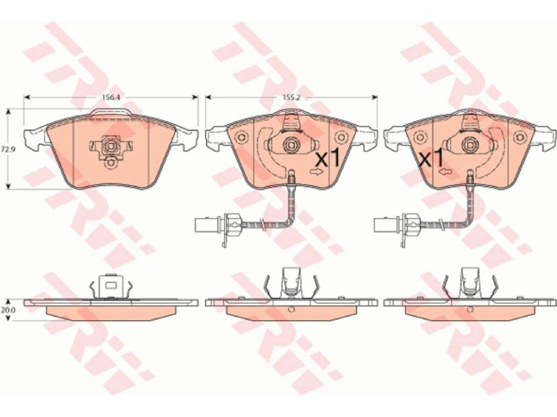 Criteries : Δώστε προσοχή στα τεχνικά στοιχεία , εξαρτώμενο από τη φορά περιστροφής , Επαφή προειδοποίησης φθοράς συμπεριλ. επαφής για ένδειξη φθοράς, Μήκος 1 [mm] 155,2, Μήκος 2 [mm] 156,4, Μήκος επαφής προειδοποίησης [mm] 270, Πάχος [mm] 20, Περιορισμός κατασκευαστή ATE, Στοιχεία ελέγχου E9 90R - 01107/708, Υψος [mm] 72,9, Φρένα μόνο σε συνδυασμό με χαλύβδινες δισκόπλακες, Φρένα όχι για καρμπόν κεραμικές δισκόπλακες