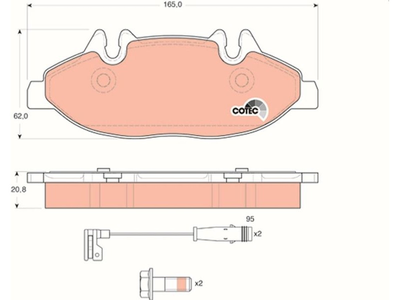 Criteries : Επαφή προειδοποίησης φθοράς συμπεριλ. επαφής για ένδειξη φθοράς, Μήκος επαφής προειδοποίησης [mm] 95, Πάχος [mm] 20,8, Περιορισμός κατασκευαστή BOSCH, Πλάτος [mm] 165, Πλήθος ενδείξεων φθοράς [ανά άξονα] 2, Στοιχεία ελέγχου E2 90R - 01124/022, Συμπληρωματικό προϊόν / συμπληρωματική πληροφορία με αξεσουάρ, Συμπληρωματικό προϊόν/ πληροφορίες 2 με βίδες δαγκάνας φρένων, Υψος [mm] 62