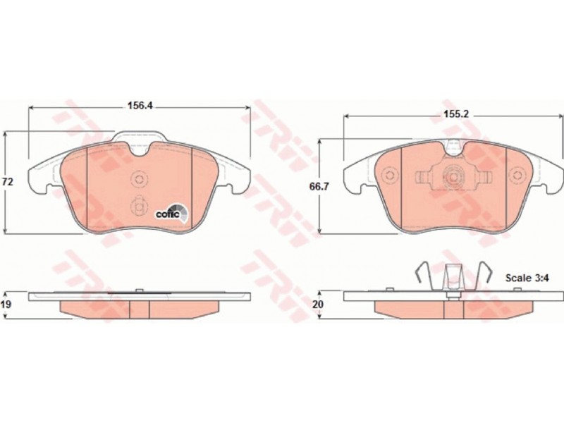 Criteries : Δώστε προσοχή στα τεχνικά στοιχεία , Επαφή προειδοποίησης φθοράς όχι προετοιμασμένο για προειδοποιητική ένδειξη φθοράς, Μήκος 1 [mm] 156,4, Μήκος 2 [mm] 155,2, Πάχος 1 [mm] 19, Πάχος 2 [mm] 20, Περιορισμός κατασκευαστή ATE, Στοιχεία ελέγχου E9 90R - 01107/1434, Ύψος 1 [mm] 72, Ύψος 2 [mm] 66,7