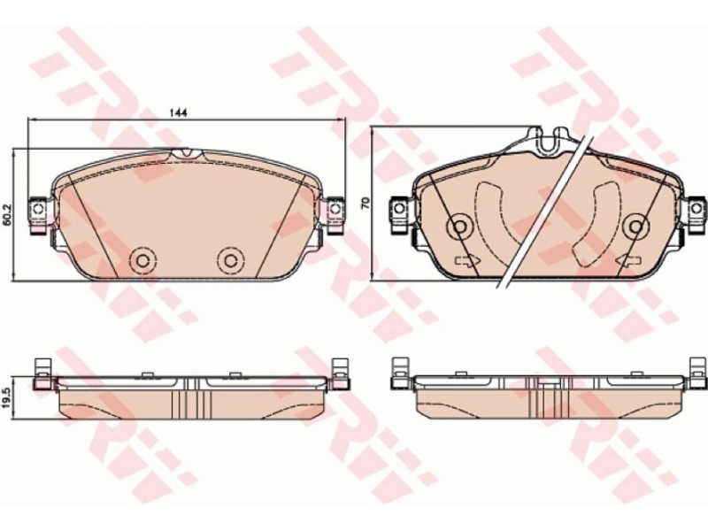 Criteries : Επαφή προειδοποίησης φθοράς προετοιμασμένο για προειδοποιητική ένδειξη φθοράς, Πάχος [mm] 19,5, Περιορισμός κατασκευαστή TRW, Πλάτος [mm] 144, Στοιχεία ελέγχου E9 90R-02A0107/3979, Υψος [mm] 60,2