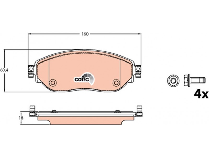 Criteries : Επαφή προειδοποίησης φθοράς όχι προετοιμασμένο για προειδοποιητική ένδειξη φθοράς, Πάχος [mm] 18, Περιορισμός κατασκευαστή TRW, Πλάτος [mm] 160, Στοιχεία ελέγχου E9 90R-02A1054/4268, Συμπληρωματικό προϊόν / συμπληρωματική πληροφορία με αξεσουάρ, Συμπληρωματικό προϊόν/ πληροφορίες 2 με βίδες δαγκάνας φρένων, Υψος [mm] 60,4
