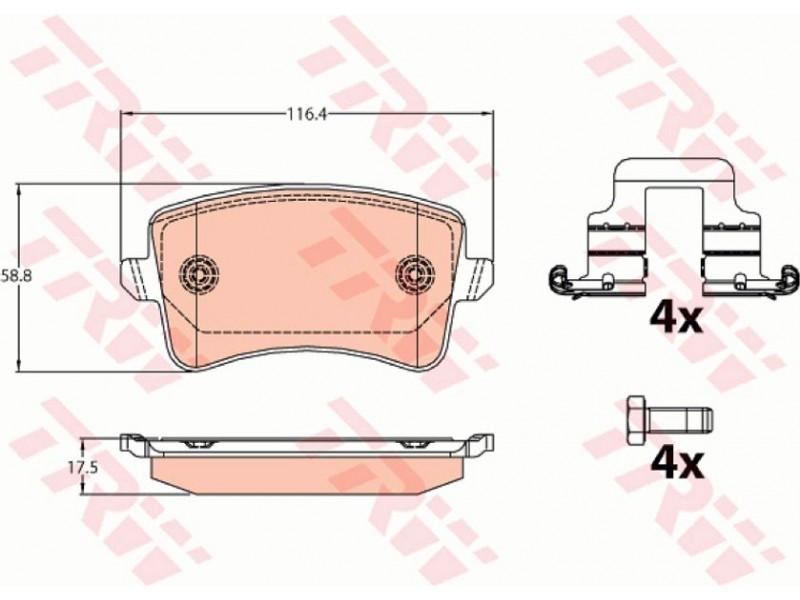 Criteries : Επαφή προειδοποίησης φθοράς όχι προετοιμασμένο για προειδοποιητική ένδειξη φθοράς, Πάχος [mm] 17,5, Περιορισμός κατασκευαστή TRW, Πλάτος [mm] 116,4, Στοιχεία ελέγχου E9 90R - 01120/2358, Συμπληρωματικό προϊόν / συμπληρωματική πληροφορία με αξεσουάρ, Υψος [mm] 58,8