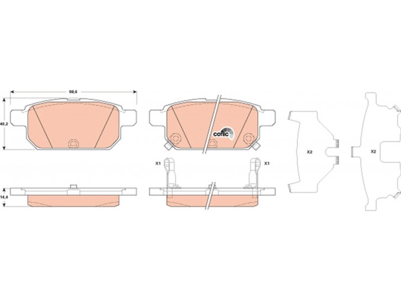 Criteries : Επαφή προειδοποίησης φθοράς με ηχητική προειδοποίηση φθοράς, Πάχος [mm] 14,4, Περιορισμός κατασκευαστή AKEBONO, Πλάτος [mm] 98,6, Στοιχεία ελέγχου E9 90R - 01120/3167, Υψος [mm] 40,2