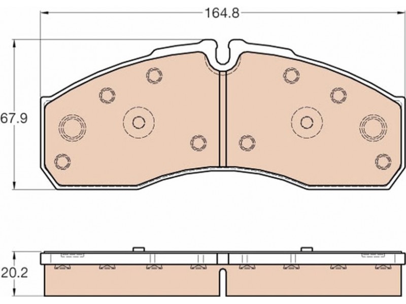 Criteries : Επαφή προειδοποίησης φθοράς προετοιμασμένο για προειδοποιητική ένδειξη φθοράς, Πάχος [mm] 20,2, Περιορισμός κατασκευαστή BREMBO, Πλάτος [mm] 164,8, Στοιχεία ελέγχου E9 90R-02A0167/1318, Υψος [mm] 67,9