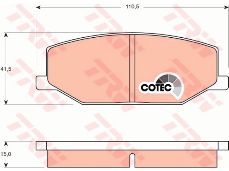 Criteries : Επαφή προειδοποίησης φθοράς όχι προετοιμασμένο για προειδοποιητική ένδειξη φθοράς, Πάχος [mm] 15, Περιορισμός κατασκευαστή SUMITOMO, Πλάτος [mm] 110,5, Στοιχεία ελέγχου E9 90R 01705/034, Υψος [mm] 41,5
