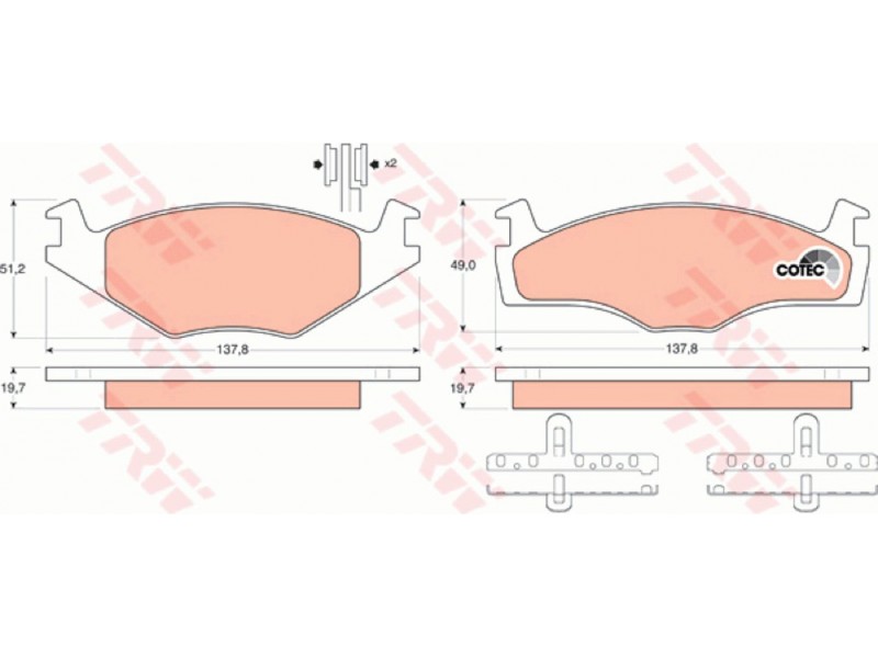 Criteries : Επαφή προειδοποίησης φθοράς όχι προετοιμασμένο για προειδοποιητική ένδειξη φθοράς, Πάχος [mm] 19,7, Περιορισμός κατασκευαστή VAG, Πλάτος [mm] 137,8, Στοιχεία ελέγχου E1 90R 01024/373, Συμπληρωματικό προϊόν / συμπληρωματική πληροφορία με αξεσουάρ, Υψος [mm] 49