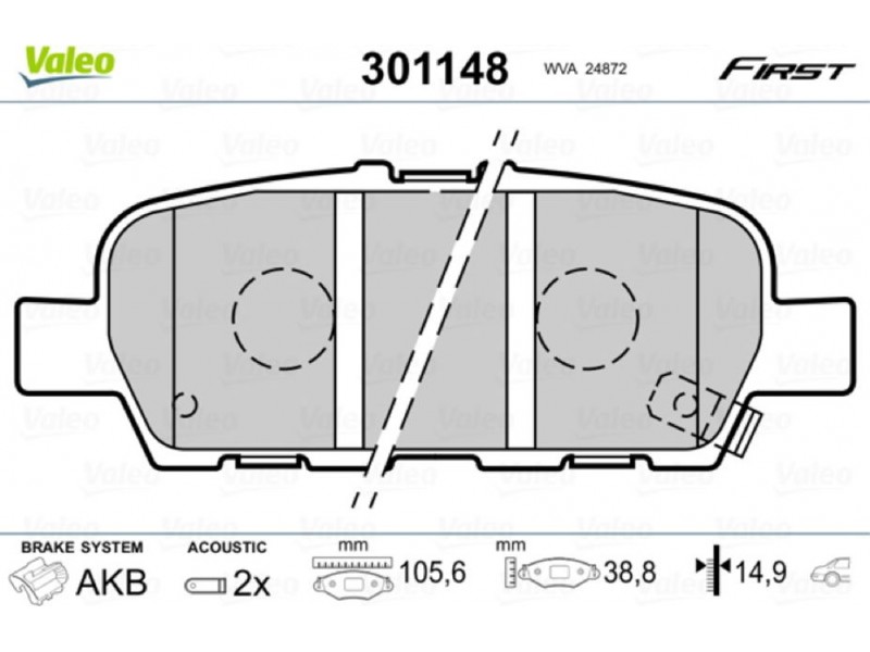 301148 ΤΑΚΑΚΙΑ ΟΠ. (ΣΥΣΤ. AKEBONO) VALEO 301148 - Σετ τακάκια, δισκόφρενα
