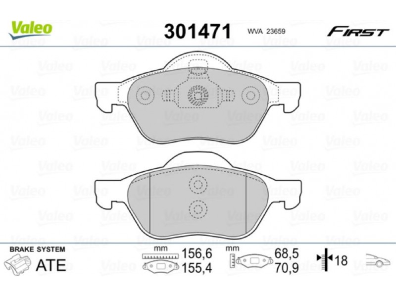 VALEO ΔΙΣΚΟΦΡΕΝΑ VALEO 301471 - Σετ τακάκια, δισκόφρενα