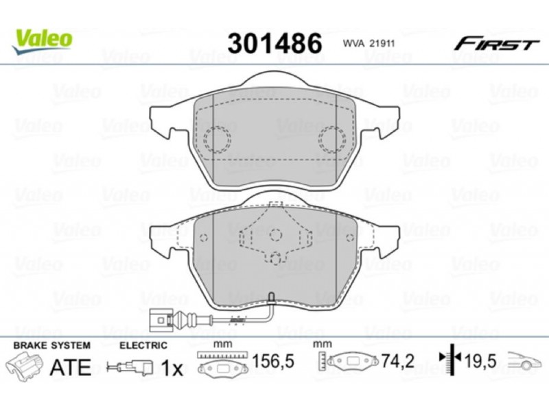 301486 ΤΑΚΑΚΙΑ VALEO 301486 - Σετ τακάκια, δισκόφρενα