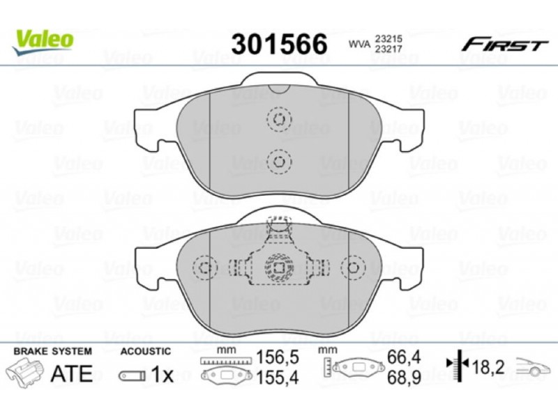 301566 ΤΑΚΑΚΙΑ ΕΜΠΡ. VALEO 301566 - Σετ τακάκια, δισκόφρενα