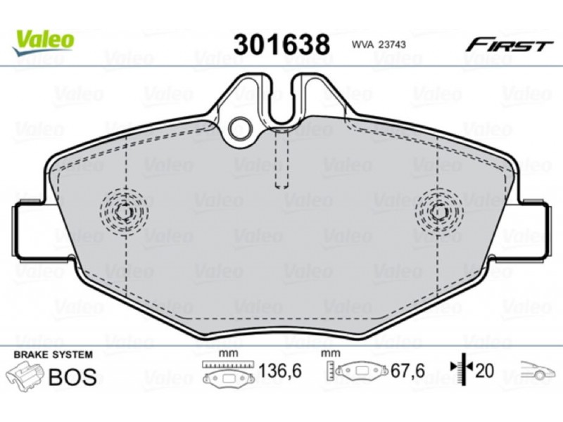 Criteries : Αριθμός WVA 23743, Βάρος [kg] 2,11, Επαφή προειδοποίησης φθοράς συμπεριλ. επαφής για ένδειξη φθοράς, Πάχος [mm] 20, Πλάτος [mm] 137, Πλευρά τοποθέτησης μπροστινός άξονας, Πλήθος ενδείξεων φθοράς [ανά άξονα] 2, Στοιχεία ελέγχου ECE-R90, Συμπληρωματικό προϊόν/ πληροφορίες 2 με αντικραδασμικό έλασμα, Σύστημα φρένων BOSCH, Υψος [mm] 67,6