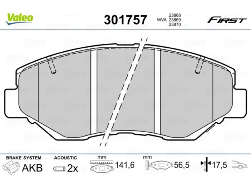 301757 ΤΑΚΑΚΙΑ ΕΜΠΡ. VALEO 301757 - Σετ τακάκια, δισκόφρενα