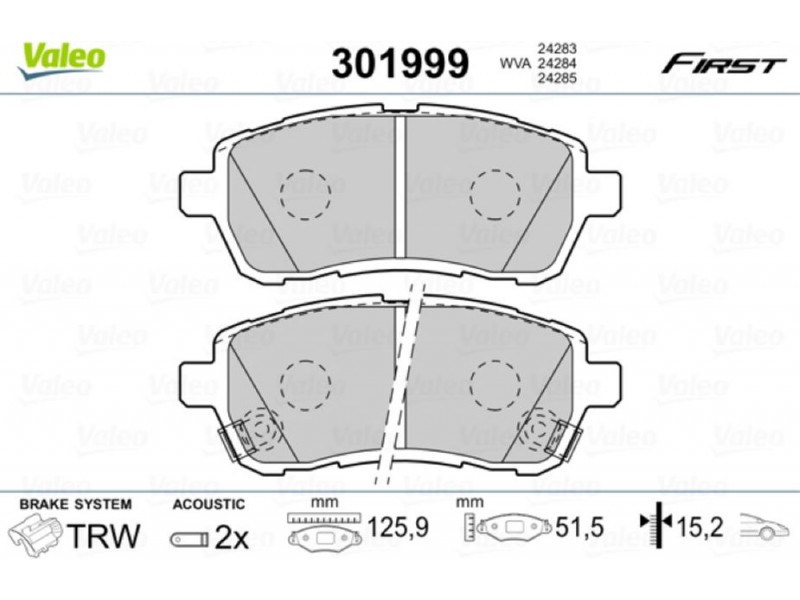 Valeo Σετ τακάκια, Δισκόφρενα - 301999