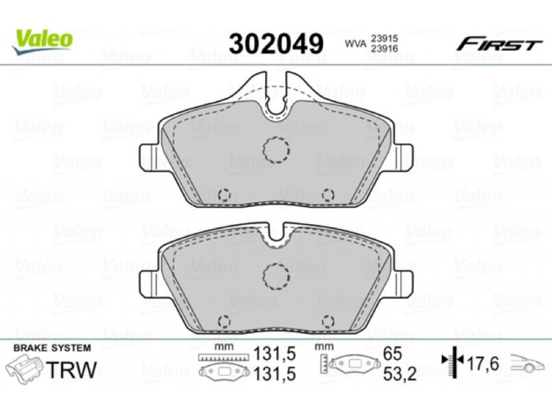 VA302049447 ΤΑΚΑΚΙΑ ΕΜΠΡ. (ΣΥΣΤ. TRW) VALEO 302049 - Σετ τακάκια, δισκόφρενα
