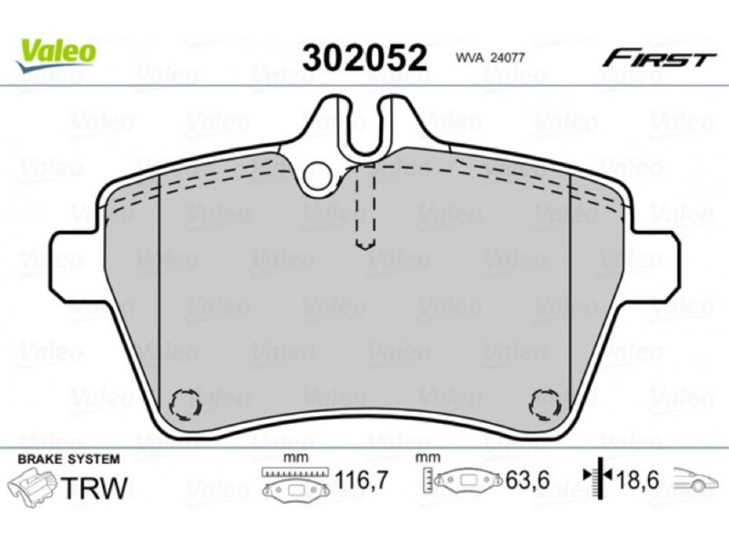 Criteries : Αριθμός WVA 24077, Βάρος [kg] 1,365, Επαφή προειδοποίησης φθοράς εξαιρ. επαφής προειδ. φθοράς, Πάχος [mm] 18,6, Πλάτος [mm] 117, Πλευρά τοποθέτησης μπροστινός άξονας, Στοιχεία ελέγχου ECE-R90, Συμπληρωματικό προϊόν/ πληροφορίες 2 με αντικραδασμικό έλασμα, Σύστημα φρένων TRW, Υψος [mm] 63,6