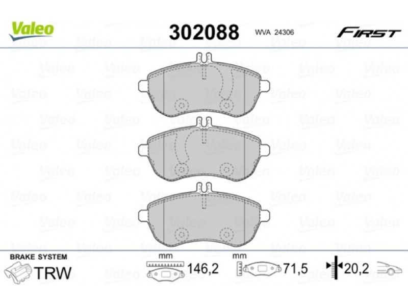 Valeo Σετ τακάκια, Δισκόφρενα - 302088