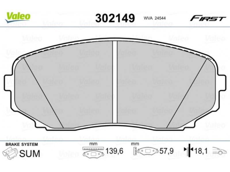 302149 ΤΑΚΑΚΙΑ VALEO 302149 - Σετ τακάκια, δισκόφρενα