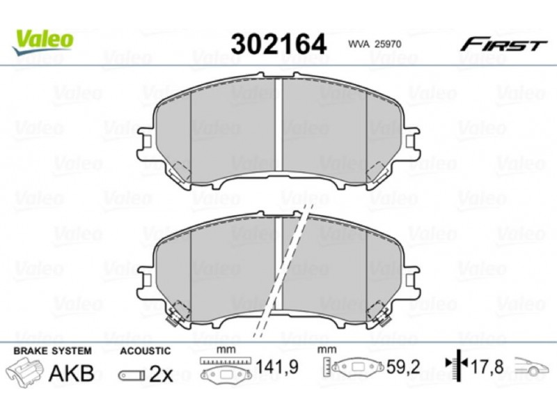 VA302164 ΤΑΚΑΚΙΑ ΕΜΠΡ (ΣΥΣΤ AKEBONO) VALEO 302164 - Σετ τακάκια, δισκόφρενα