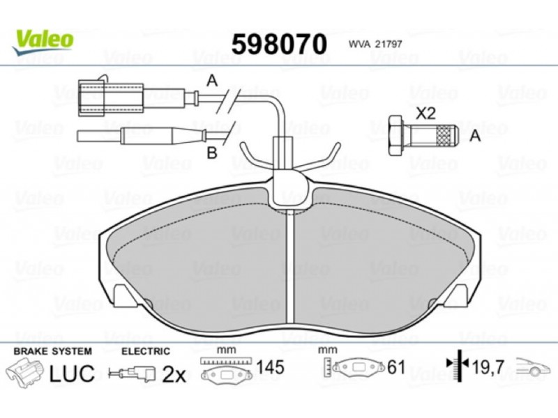 Valeo Σετ τακάκια, Δισκόφρενα - 598070