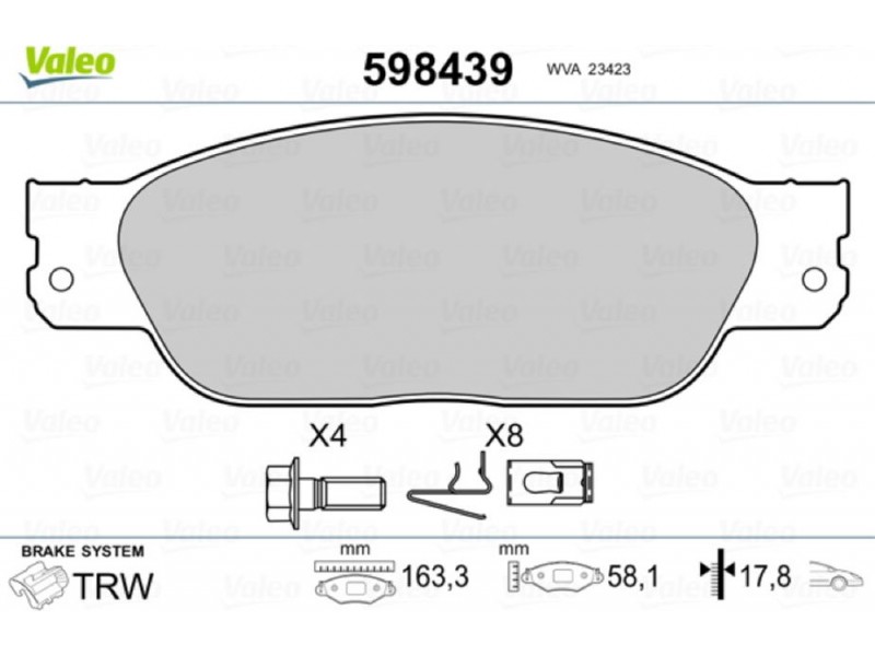 Valeo Σετ τακάκια, Δισκόφρενα - 598439