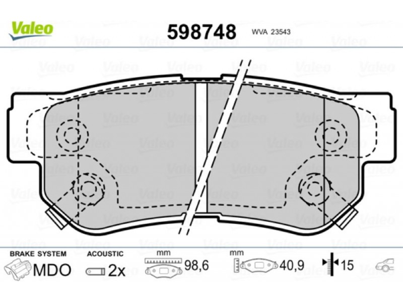 Valeo Σετ τακάκια, Δισκόφρενα - 598748