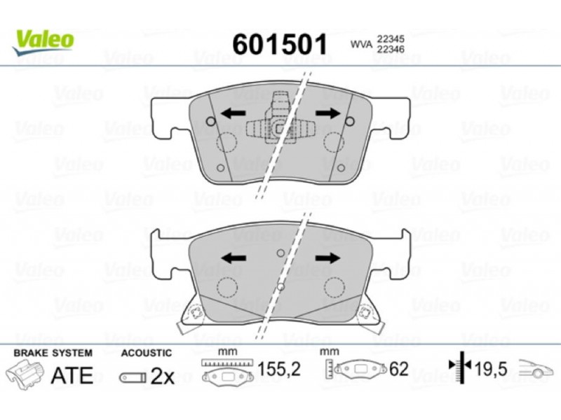 Valeo Σετ τακάκια, Δισκόφρενα - 601501
