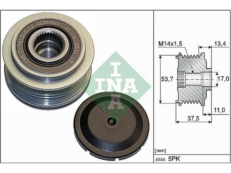 INA ΤΡΟΧΑΛΙΑ ΔΥΝΑΜΟ INA 535 0278 10 - Ελεύθερη περιστροφή γεννήτριας