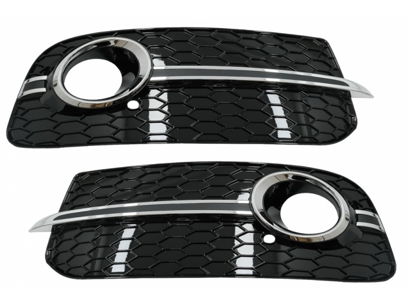 Καλύμματα Φώτων ομίχλης, Πλαϊνές γρίλιες, Κατάλληλα Για Audi Q5 Suv 8R Facelift (2012-2016) Rs Design Black & Chrome