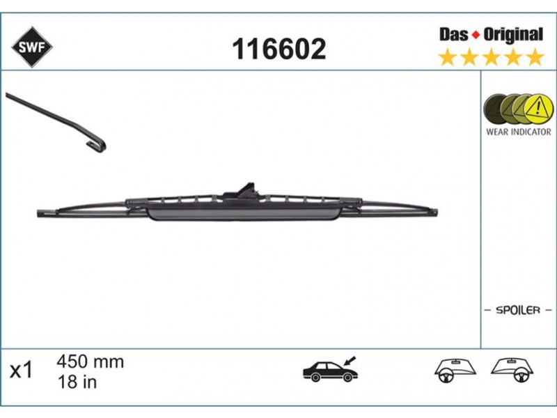 116602 ΜΑΚΤΡΑ Χ1 SWF STANDARD (450MM) ΣΠΟΙΛΕΡ SWF 116602 - Μάκτρο καθαριστήρα