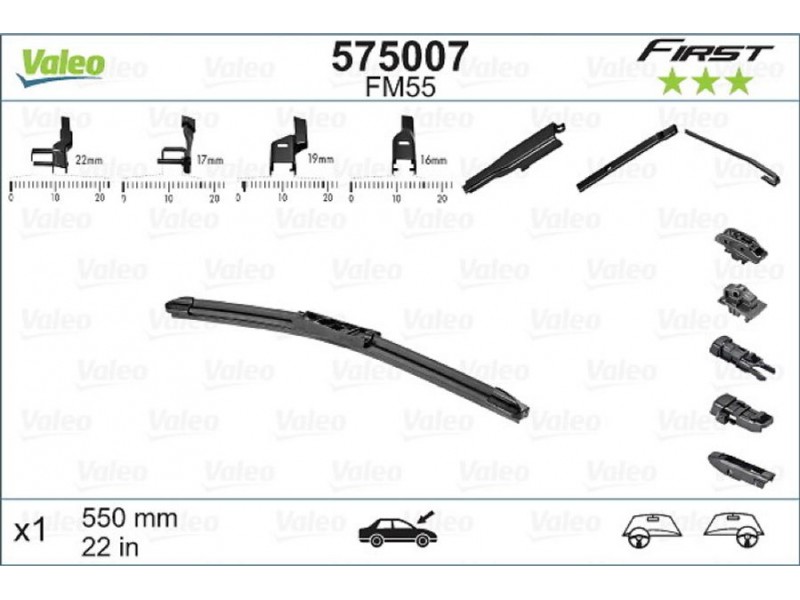 Criteries : Μήκος [mm] 550, Μήκος [ίντσες] 22, Παραλλαγή μάκτρων καθαριστήρα Μάκτρο καθαριστήρα, περιέχει αντάπτορα M+A+B+C, Ποσότητα 1, Υλικό λάμας SBR (καουτσούκ στυρολίου-βουταδιενίου)